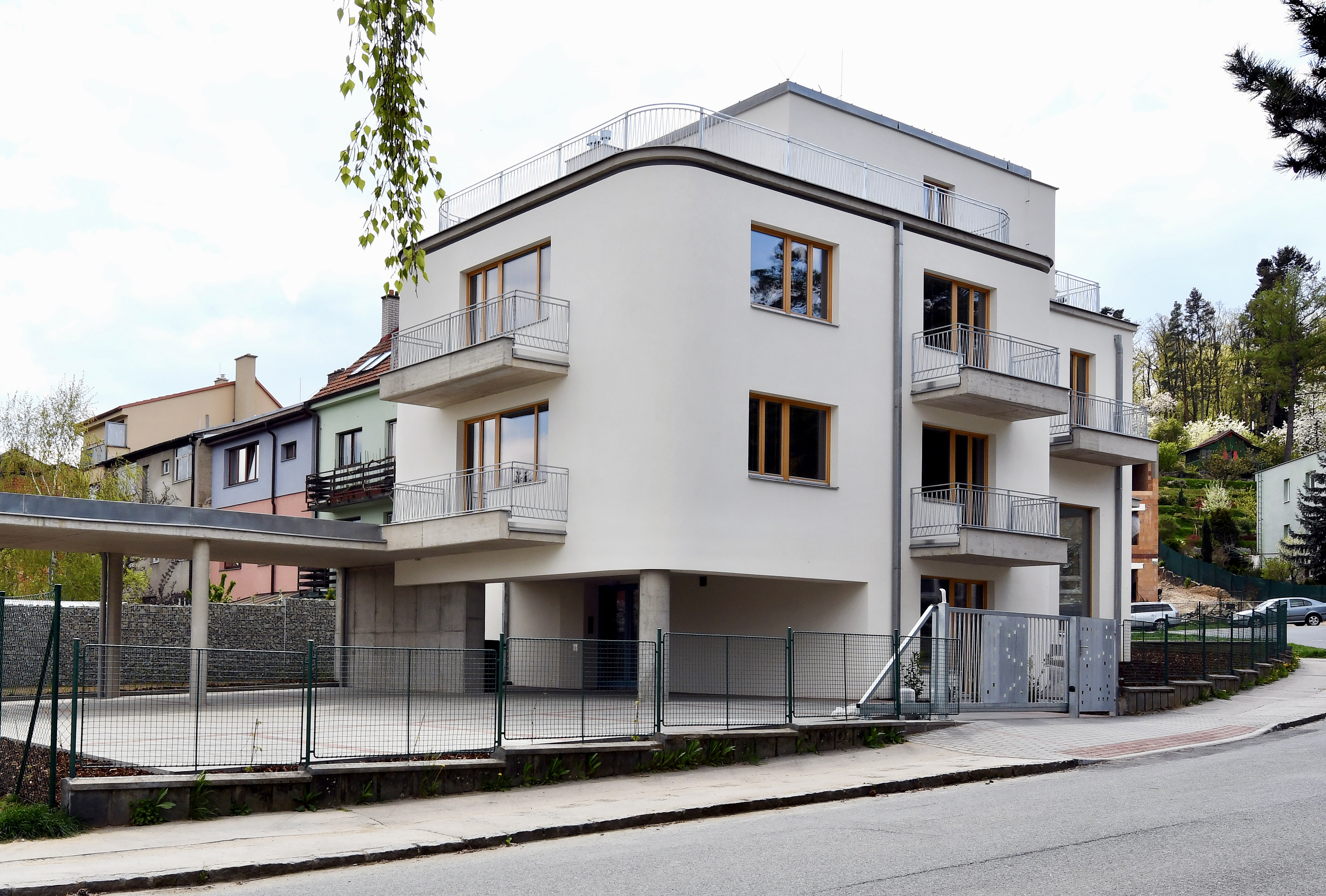 Jde o koncový řadový dům v ulici Březová, který byl navržen jako dvoupodlažní se třetím ustupujícím podlažím a jedním podlažím podzemním. Na pozemku se nachází přístřešek pro pět aut, další parkovací místa byla vybudována externě. Objekt je řešen bezbariérově.